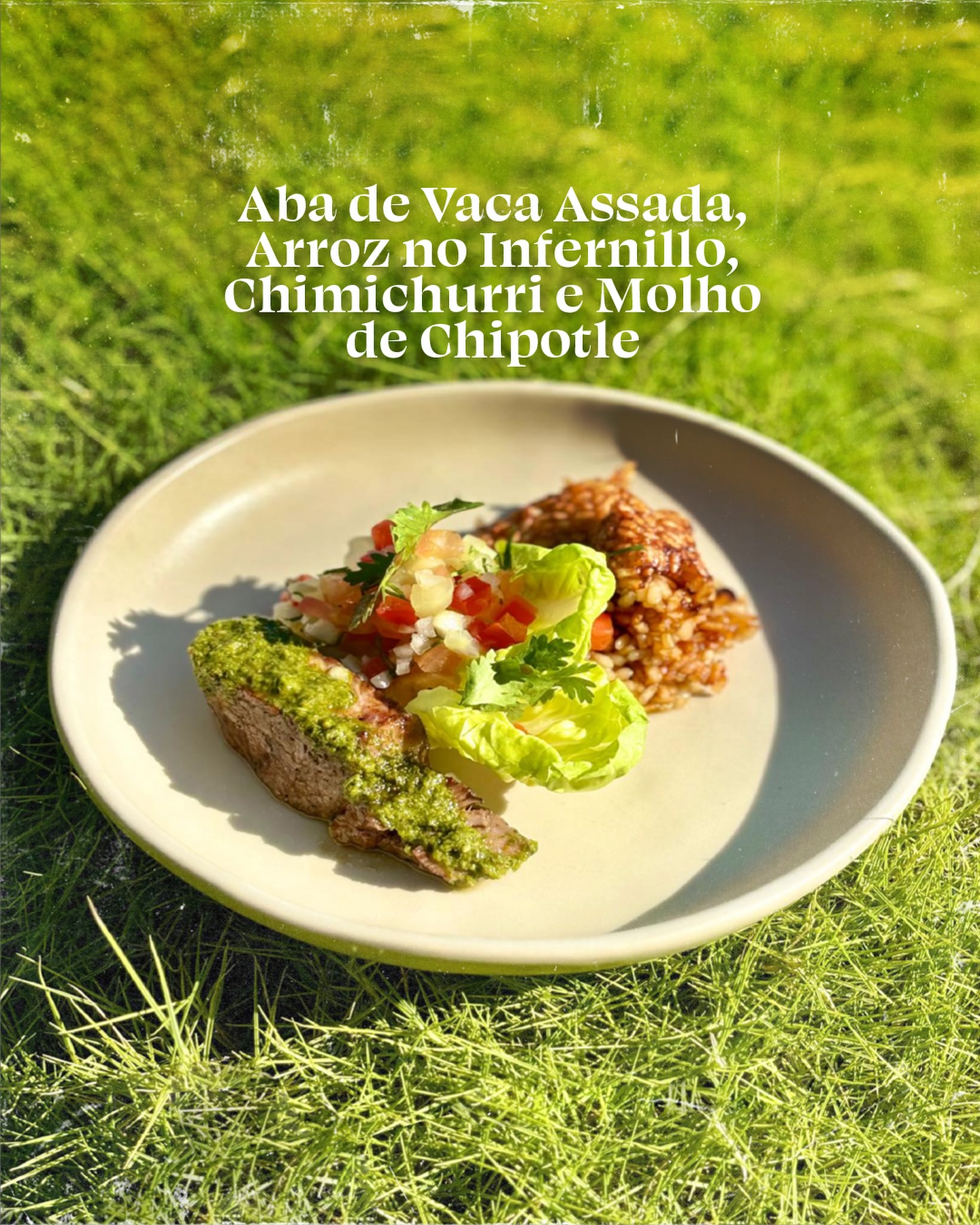 Aba de Vaca Assada, Arroz no Internillo, Chimichurri e Molho de Chipotle