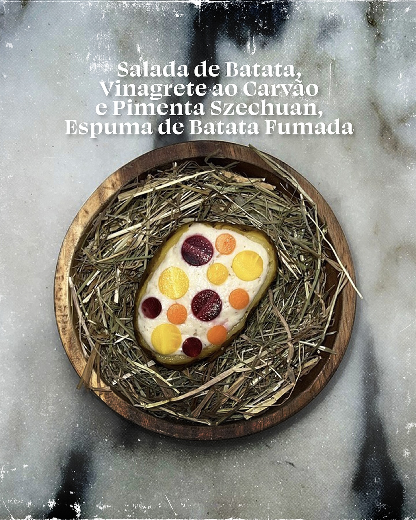 Ao Chefs on Fire vai trazer uma Salada de Batata, Vinagrete ao Carvão e Pimenta Szechuan e Espuma de Batata Fumada.