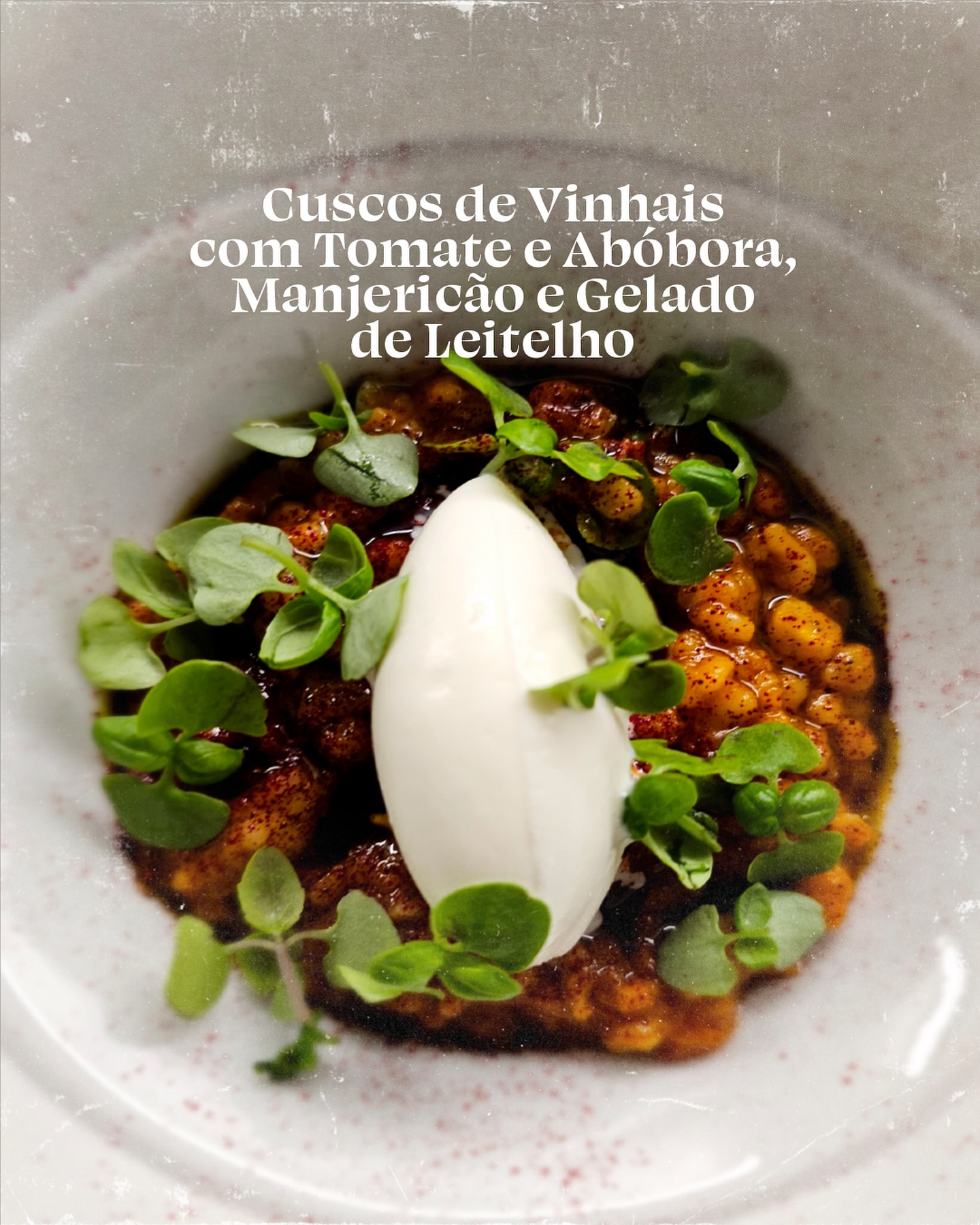 Cuscos de Vinhais com Tomate e Abóbora, Manjericão e Gelado de Leitelho