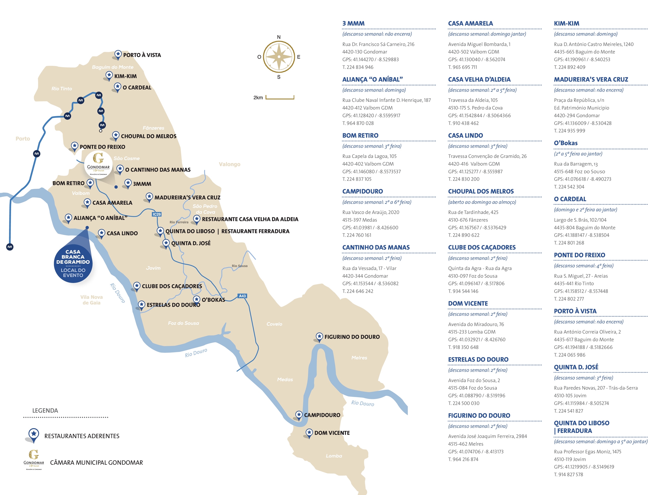Para mais informações e reservas marque +351 224 664 310, +351 932 003 358,+351 932 006 341 ou pelo e-mail turismo@cm-gondomar.pt