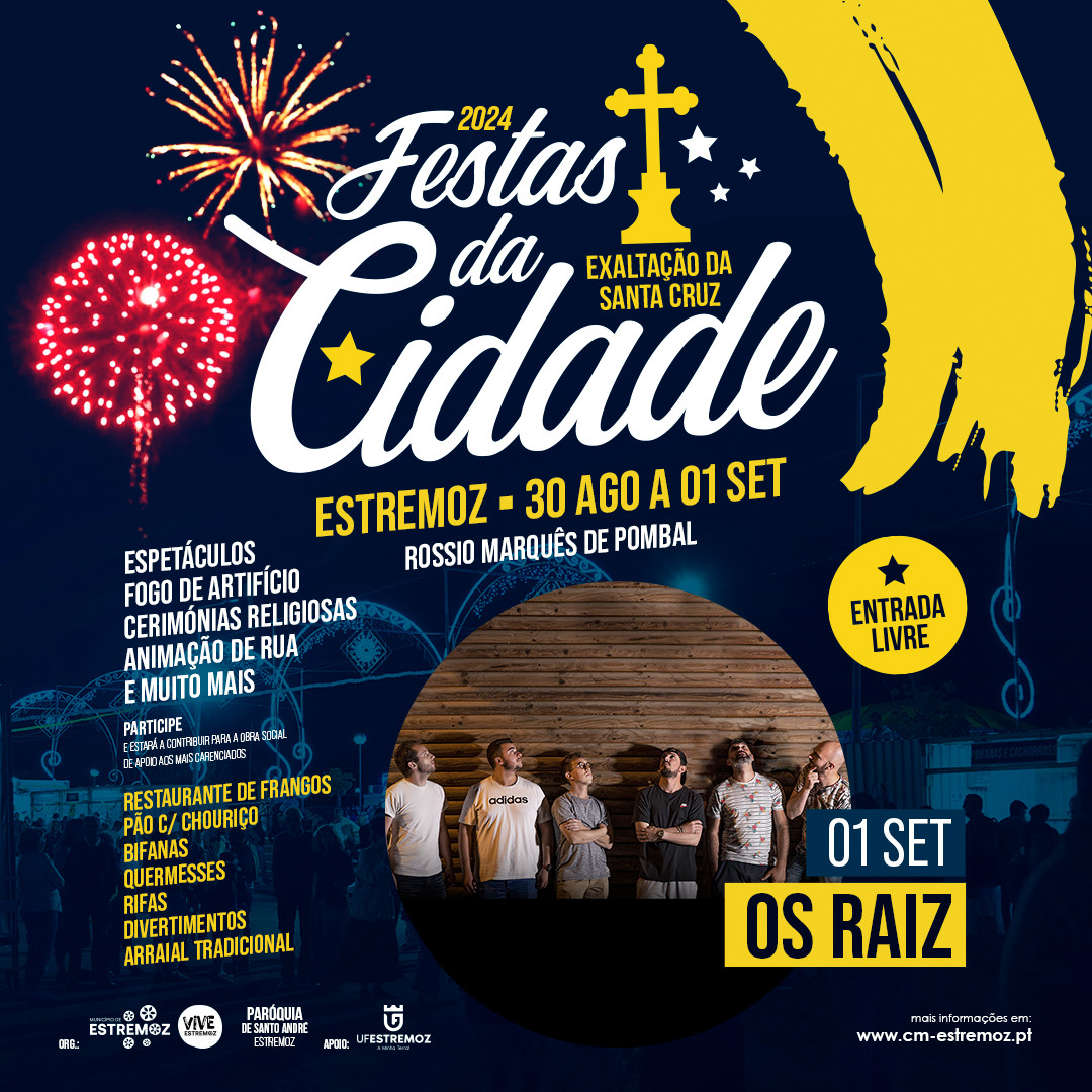FESTAS DA CIDADE DE ESTREMOZ 2024 – As Festas da Cidade de Estremoz 2024 ou Festas de Exaltação da Santa Cruz, realizam-se nos dias 30 e 31 de agosto e 01 de setembro.