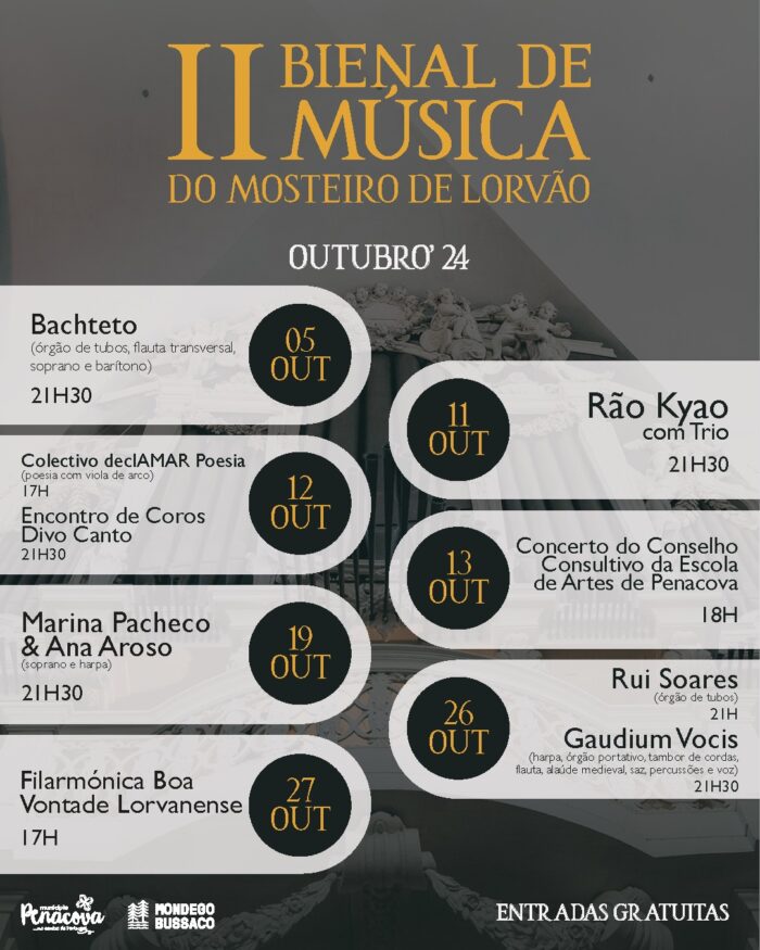 II BIENAL DE MÚSICA DO MOSTEIRO DE LORVÃO 2024 – A II Bienal de Música do Mosteiro de Lorvão, no concelho de Penacova, promete encantar os amantes da música de 05 a 27 de outubro.